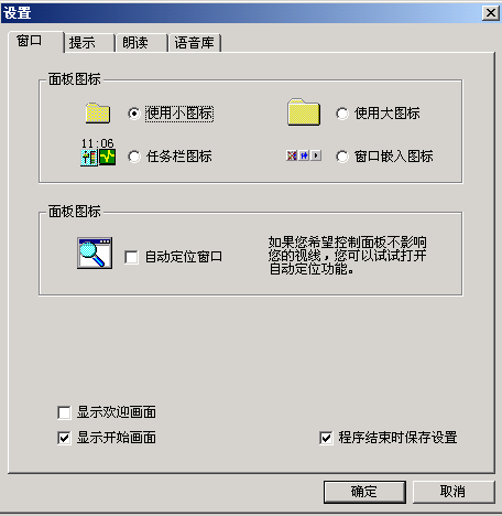 如果需要進(jìn)一步的調(diào)整,可以選擇菜單里的“設(shè)置……”。打開(kāi)設(shè)置窗口(如圖3)。窗口共分四個(gè)選項(xiàng),每個(gè)選項(xiàng)里除了剛介紹的幾種常用功能調(diào)整外,還可以控制歡迎畫面、開(kāi)始畫面、設(shè)定存儲(chǔ)等功能,規(guī)定提示速度、朗讀速度的快慢,選擇提示方式,設(shè)定提示報(bào)警條件。在“語(yǔ)音庫(kù)”選項(xiàng)中還可以選擇朗讀為男聲還是女聲。單擊“設(shè)置”按鈕,可以根據(jù)具體需要選擇“鍵盤”或“中文”里被朗讀標(biāo)點(diǎn)符號(hào)的種類(如圖4)。