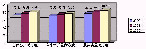 (2)率先建立以公布水質信息為特點的客戶宣傳系列。過去水質具有保密性,不能向外公開。近年來,市政府為改善水質投入了大量的資金,使自來水質量達到或超過了國家飲用水標準,但受各種飲用水產品的宣傳影響,人們對自來水疑慮重重。據客戶滿意度調查,客戶對水質的重視程度為0.63,遠遠高于對水量0.37的重視程度,說明客戶對水質的期望值較高。為正確引導客戶的期望,市北公司參照國外先進國家的慣例,爭取政府部門的支持,于2000年率先向社會公布了年度水質報告,全面地介紹自來水水質指標完成情況,并系統(tǒng)的建立了水質信息公布制度,包括公布年度水質報告,每天在公司網站上發(fā)布主要水質指標及水壓、水量信息。在此基礎上,公司又編印"市北供水服務"小報,定期發(fā)放至市北供水區(qū)域的數千家居委會和物業(yè)公司及相關部門。特別從今年開始,公司通過改版后新水費帳單上的"市北供水服務"宣傳欄,又與廣大客戶建立了新的信息溝通渠道,初步形成了市北公司的客戶宣傳構架,用較低的宣傳成本提高了客戶滿意度。