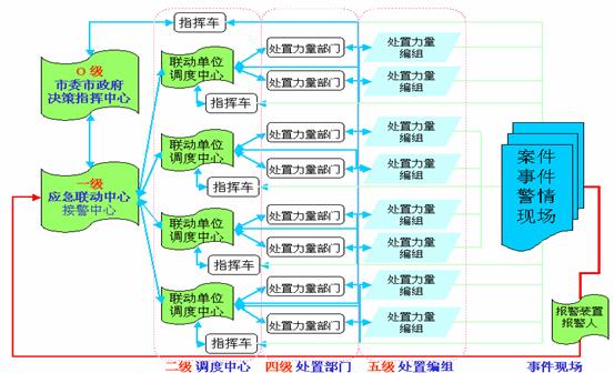 根據(jù)接過來的警情,應(yīng)急聯(lián)動系統(tǒng)向處置力量部門發(fā)出指令派出處置力量編組到現(xiàn)場,并根據(jù)現(xiàn)場反饋回來的信息,決定是否增援或歸隊(duì)。事件記錄通過局域網(wǎng)被送到相應(yīng)的處警員終端,處警員通過計(jì)算機(jī)輔助調(diào)度系統(tǒng)查詢相關(guān)資料,制定反應(yīng)措施,并向相關(guān)聯(lián)動單位發(fā)出具體調(diào)度指令。在緊急事件發(fā)生時(shí),相應(yīng)的電子預(yù)案會被觸發(fā)啟動。如果發(fā)生了重大災(zāi)難,險(xiǎn)情或特殊的事件,則可以啟用城市緊急狀態(tài)指揮室,由首長進(jìn)行統(tǒng)一指揮。