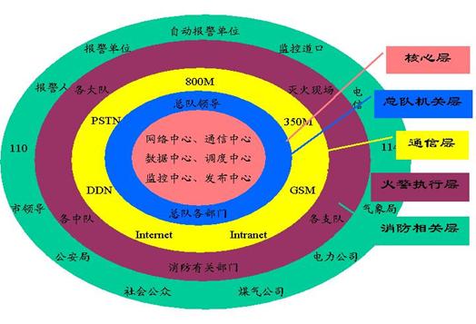 圖1-4 消防調(diào)度指揮系統(tǒng)的層次結(jié)構(gòu)示意圖