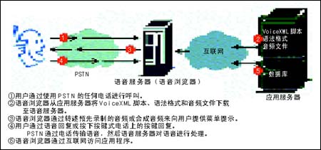 為了更好地理解VoiceXML 2.0,可以將VoiceXML和HTML進行類比。采用HTML的Web應用可以分為兩部分:瀏覽器和Web服務器。相應地,VoiceXML涉及的組件也可分為語音瀏覽器和相當于Web服務器功能的應用服務器。