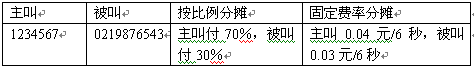 根據(jù)主叫用戶和被叫用戶之間的的關(guān)系,主叫用戶產(chǎn)生的通話費由主叫和被叫協(xié)商好的原則共同承擔。例6。
