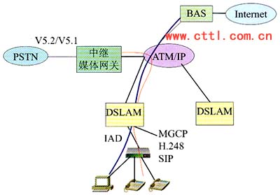 基于Ethernet接入提供分組話音歸根到底仍然是VoIP的解決方案,利用IAD支持H.248或SIP協(xié)議,可以順利地實現(xiàn)網絡的演進。VoIP