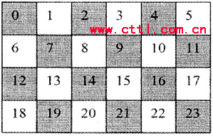 如圖3所示,陰影部分宏塊屬于片組0,白色部分屬于片組1。假設(shè)片組O在傳輸過(guò)程中丟失,由于丟失宏塊的相鄰宏塊都屬于片組1,這樣差錯(cuò)恢復(fù)工具就會(huì)有更多的可利用信息來(lái)恢復(fù)丟失片的數(shù)據(jù)。
