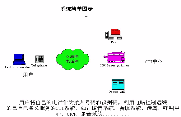 利用用戶現(xiàn)正使用的電話,利用呼叫轉(zhuǎn)移功能與CTI中心連接,為用戶提供以用戶為中心的、個性化的語音服務(wù)系統(tǒng)。以此增加電信增值業(yè)務(wù),提高電話的有效接通率,提高電信運營商的效益。