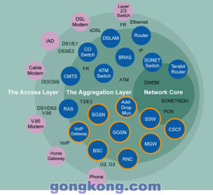 ATCA正在被廣泛應(yīng)用于無(wú)線(xiàn)網(wǎng),見(jiàn)圖2中橙色園環(huán)部分,這是由市場(chǎng)對(duì)成本效益,快速部署方案的需求驅(qū)動(dòng)的。服務(wù)提供商和TEM均認(rèn)識(shí)到:用戶(hù)愿意為3G網(wǎng)絡(luò)的先進(jìn)功能所付出的只能是少量的附加費(fèi),因此從2G/2.5G向3G轉(zhuǎn)換必須以盡可能低的成本和盡可能靈活的方案來(lái)實(shí)施,許多TEM已經(jīng)將ATCA看成滿(mǎn)足快速發(fā)展的無(wú)線(xiàn)市場(chǎng)需求的唯一技術(shù)。若基于雙星千兆以太網(wǎng)交換互連,ATCA的性能已經(jīng)很好的滿(mǎn)足無(wú)線(xiàn)網(wǎng)要求,因?yàn)檫@些網(wǎng)絡(luò)實(shí)質(zhì)上是低帶寬而高運(yùn)算密度的網(wǎng)絡(luò),對(duì)于實(shí)時(shí)敏感的語(yǔ)音應(yīng)用而言,千兆以太網(wǎng)的高速度已經(jīng)消除了延遲的問(wèn)題。
