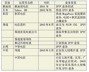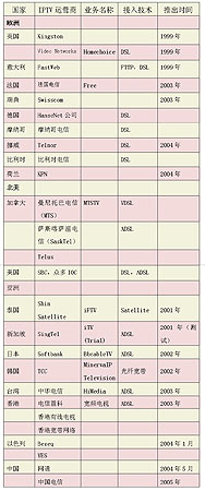 1999年,英國Video Networks公司率先在全球推出了IPTV業(yè)務(wù),此后,國外許多電信運(yùn)營商先后進(jìn)入IPTV市場。但在2004年之前,多數(shù)運(yùn)營商僅側(cè)重于IPTV的試驗(yàn),2004年后,IPTV開始從試驗(yàn)階段向商用階段轉(zhuǎn)變,許多業(yè)界人士認(rèn)為,2005年將成為IPTV年。