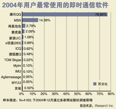 巨大的商機(jī)和財(cái)富也催生出了眾多的跟風(fēng)者,網(wǎng)易泡泡、新浪聊聊吧、搜狐搜Q等IM軟件層出不窮,與其說他們是看中即時(shí)通信市場的強(qiáng)大潛力,更不如說,他們都想要通過IM軟件的形式來爭取短信的流量。“我們希望通過這種形勢,進(jìn)一步提高新浪在短信方面的競爭力,而且最近的統(tǒng)計(jì)數(shù)據(jù)已經(jīng)表明,隨著注冊用戶忠誠度的提高和傳播效果的擴(kuò)散,我們的市場占有率在穩(wěn)固提高”,新浪聊聊吧項(xiàng)目負(fù)責(zé)人如是說。