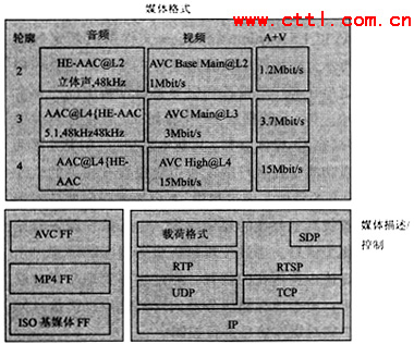如第二部分所介紹那樣,ISMA致力于多種開放標(biāo)準(zhǔn)的集成,在2004年發(fā)布的ISMA2.0中給出了ISMA對流媒體業(yè)務(wù)的框架結(jié)構(gòu)圖(見圖3)。從圖中可以看出、,ISMA最先希望解決的是與媒體編碼格式、媒體存儲、媒體傳輸(包括載荷輪廓)相關(guān)內(nèi)容。在ISMA目前的體系架構(gòu)中主要希望支持采用MPEG4標(biāo)準(zhǔn)進行編碼的媒體以及相應(yīng)的標(biāo)準(zhǔn)存儲格式以及IETF所規(guī)定的標(biāo)準(zhǔn)傳輸協(xié)議,這與ISMA制定標(biāo)準(zhǔn)的準(zhǔn)則相一致。