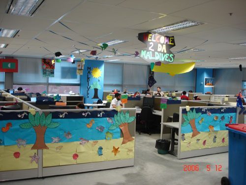 由于這種獨特的管理方式吸引了眾多的同行前來參觀,該中心特別安排了熱情的Sally負責導游。Sally帶我們參觀說的第一句話就是:“我真是喜愛我們的呼叫中心,這里的年輕人富有創(chuàng)意,充滿激情,他們非常喜歡在這里工作。”于是我們參觀了“蜘蛛俠”,“蒙娜麗莎”,“大英帝國”,“典雅餐廳”,“熱帶公園”,“幾何世界”,“海底世界”,“白色圣誕節(jié)”等不同的Pod,實在是好像到了聯(lián)合國。