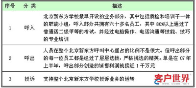 北京新東方學(xué)校呼叫中心在1999年還只是3部咨詢電話,不到10名工作人員。到今年,已經(jīng)擁有36個(gè)座席以及72名經(jīng)過專業(yè)培訓(xùn)的座席代表,平均每日接聽3500通電話。