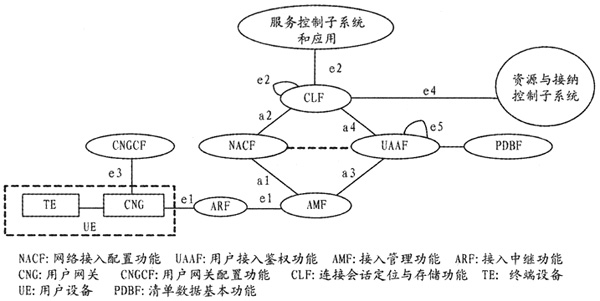 AMF負(fù)責(zé)翻譯UE的接入請(qǐng)求,將UE的IP地址分配請(qǐng)求以及網(wǎng)絡(luò)配置參數(shù)請(qǐng)求轉(zhuǎn)發(fā)至NACF,將用戶鑒權(quán)請(qǐng)求轉(zhuǎn)發(fā)給用戶接入鑒權(quán)功能(UAAF),反向則將來自NACF或UAAF的響應(yīng)轉(zhuǎn)發(fā)給UE。