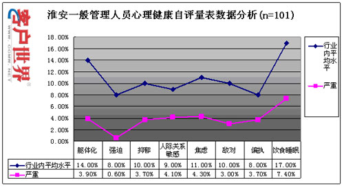 目前,員工壓力和心理健康情況已成為困擾整個行業(yè)的主要問題之一,我們通過專業(yè)方法對淮安中心的員工心理健康和壓力狀況進行了科學的測量,以了解該中心員工的壓力和心理健康狀況,具體測量數(shù)據(jù)如下: