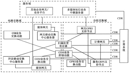 主要實現各類數據增值業(yè)務,例如WAP業(yè)務、互聯網短信業(yè)務、位置應用業(yè)務等。業(yè)務域由各業(yè)務網關/業(yè)務平臺產生CDR后,發(fā)送給計費系統作后續(xù)處理。例如,多媒體信息服務(MMS)的CDR由MMS
