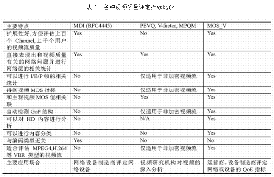 MOS_V,另一種是視頻的全參考(Full Reference)質(zhì)量評(píng)定。幾種評(píng)定方面的簡(jiǎn)單比較如表1所示,相應(yīng)指標(biāo)的介紹可以參考《電信網(wǎng)技術(shù)》2007年第12期的《IPTV QoE測(cè)試指標(biāo)概述》。