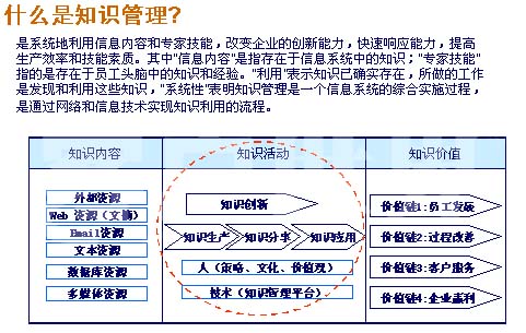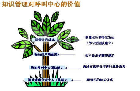 實(shí)際上我告訴大家,知識(shí)管理有兩點(diǎn):第一點(diǎn)就是說利用信息內(nèi)容和專家技能來改變企業(yè)創(chuàng)新的能力。我這個(gè)定義有很多,我這個(gè)定義是引用了IBM公司的定義。大家可以看到,利用我們的專家技能,所有的知識(shí)管理最重要的一個(gè)是什么呢?就是我們的知識(shí)活動(dòng),要有人去參與我們的知識(shí)活動(dòng)當(dāng)中來,讓我們的活動(dòng)升值。因?yàn)槲以?jīng)有一個(gè)體會(huì),作為呼叫中心來說,流失率永遠(yuǎn)都是很大的,你辛苦的培養(yǎng)了一個(gè)員工,這個(gè)員工工作了一年以后,他走掉了,他走掉了以后什么都沒有留下。因?yàn)榍耙欢螘r(shí)間我自己有一個(gè)體會(huì),我去閱讀我們的知識(shí)庫(kù)的時(shí)候,我看到了2004年的時(shí)候,我的一個(gè)員工寫的一幅文章,他分享了他的經(jīng)驗(yàn),但是這個(gè)員工我都記不得他的相貌,但是我讀到的時(shí)候,我還是感覺到這個(gè)員工就好像在我們這里工作一樣,實(shí)際上這就是簡(jiǎn)單的知識(shí)管理,知識(shí)管理人走了以后,會(huì)把他的經(jīng)驗(yàn)保存下來,說得不好聽一點(diǎn),會(huì)世代相傳,所以培養(yǎng)你的員工,投入了這么大的成本,讓他把經(jīng)驗(yàn)分享下來,保存下來,讓后來的同事讀了以后,還會(huì)豐富它,所以說這就是知識(shí)管理,所以很多人感覺到知識(shí)管理就是知識(shí)提供,我是把很多的信息提供過來就可以了,實(shí)際不一樣。