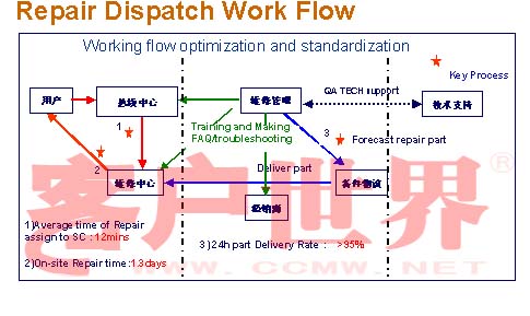 剛才講了電話銷售,每天把用戶的需求及時(shí)地傳遞到我們經(jīng)銷商的店面,由經(jīng)銷商完成整個(gè)產(chǎn)品的銷售,下面跟大家去分享在維修當(dāng)中是怎么去做了,可以看到一開始的時(shí)候,愛普生整個(gè)的維修,整個(gè)的路程比較長(zhǎng),用戶有維修需求的話,會(huì)打電話到呼叫中心,呼叫中心會(huì)打到維修管理的公司,由維修管理公司再傳遞到我們當(dāng)?shù)厥跈?quán)的服務(wù)中心,由服務(wù)中心再給用戶提供上門的服務(wù),整個(gè)過程比較長(zhǎng)。但有了一站式服務(wù)以后,用戶直接保修到熱線服務(wù)中心,由熱線服務(wù)中心直接派單到維修中心,由維修中心直接去給用戶提供上門的服務(wù),以前我們整個(gè)的派單大概需要4個(gè)小時(shí)的時(shí)間,而現(xiàn)在整個(gè)派單只有12分鐘就可以完成了,同時(shí)也大量縮短了維修周期,因?yàn)橐郧暗木S修周期可能兩天左右,但現(xiàn)在我們的維修周期大概在1到3天左右,整個(gè)一站式的服務(wù),通過把客戶的信息最大化利用,改善我們服務(wù)的品質(zhì),它是有一個(gè)很大的幫助。