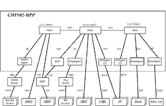 Provider)的交易請(qǐng)求,根據(jù)用戶的賬戶設(shè)置情況,與本地?cái)?shù)據(jù)庫(kù)(或銀行、或BOSS系統(tǒng))交互,完成對(duì)用戶支付賬戶的扣費(fèi)操作;業(yè)務(wù)受理部分MPSU:完成業(yè)務(wù)受理的功能,處理管理員、營(yíng)業(yè)廳操作員、或用戶的業(yè)務(wù)管理請(qǐng)求,進(jìn)行相應(yīng)查詢、配置或計(jì)算,并返回結(jié)果;代理部分Agent,例如:WWWAgent,BankAgent等負(fù)責(zé)與各個(gè)外部實(shí)體的通信;另外,系統(tǒng)還應(yīng)有輔助模塊用來(lái)完成系統(tǒng)各進(jìn)程的守護(hù)、監(jiān)視、控制、以及系統(tǒng)性能數(shù)據(jù)的采集功能。