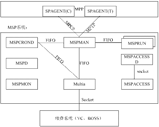 MSP系統(tǒng)內(nèi)部通過(guò)FIFO(First In First Out)消息進(jìn)行通信,與外部實(shí)體通過(guò)socket消息進(jìn)行通信。