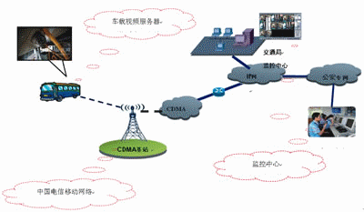 通過(guò)電信CDMA無(wú)線網(wǎng)絡(luò),采集移動(dòng)車(chē)輛視頻信息,傳送給監(jiān)控中心實(shí)現(xiàn)遠(yuǎn)程視頻瀏覽、遠(yuǎn)程控制功能,同時(shí)車(chē)載終端連接LCD觸摸屏并安裝GPS模塊后實(shí)現(xiàn)衛(wèi)星定位和語(yǔ)音自導(dǎo)航功能。系統(tǒng)發(fā)送監(jiān)控及定位信息給調(diào)度監(jiān)控中心,監(jiān)控中心實(shí)現(xiàn)大屏幕視頻圖像、電子地圖顯示,能及時(shí)、準(zhǔn)確地對(duì)車(chē)輛進(jìn)行調(diào)度、監(jiān)控和管理。監(jiān)控中心也可以向車(chē)輛發(fā)送調(diào)度、路況、新聞等各種信息,提供更好的服務(wù)。