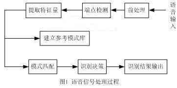 由圖1可知,軟件系統(tǒng)的設(shè)計(jì)主要包括端點(diǎn)檢測(cè)、特征量提取和模式匹配。