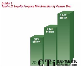 據(jù)權(quán)威的客戶忠誠度研究機(jī)構(gòu)COLLOQUY在2009出版的一份報(bào)告,2008年底,全美客戶忠誠度計(jì)劃的參與人次達(dá)到18.07億,平均每個(gè)美國家庭參與了14.1個(gè)忠誠度計(jì)劃,相較2006年底的13.41億參與人次,共增了了24.73%(連續(xù)兩年環(huán)比增長12%/年),而同期美國的GDP增長僅為2.2%。從這一點(diǎn)上看,美國企業(yè)對忠誠度營銷的熱情不減,盡管忠誠度營銷在美國已相當(dāng)成熟,但美國企業(yè)仍然把它當(dāng)作是營銷的重要工具。
