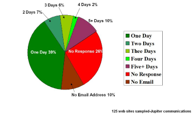 該報告進一步總結(jié)到,60%的網(wǎng)站客戶希望更多互動但許多電子商務企業(yè)無法回應電子郵件且不能提供足夠的電話支持。也有很多電子商務企業(yè)提供電子郵件支持,比如說etoys,但對于如潮水般洶涌而來的電子郵件聯(lián)絡他們顯然沒有什么準備以至于處理結(jié)果符合客戶預期的郵件少之又少。如果處理的好