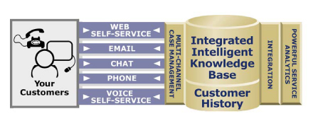 Technologies”是一家非常著名的多接觸點呼叫中心供應商,這家公司建議采用“通用事故”追蹤機制,它強調(diào)報表和歷史紀錄必須作為任何一個多接觸點聯(lián)絡中心不可或缺的組成部分!癛ightnow”提供的以下插圖很清楚地向我們展示了多渠道知識庫集成是如何被強制執(zhí)行的。