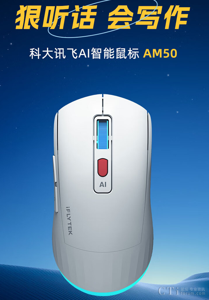 科大訊飛智能鼠標(biāo)AM50的最大亮點是搭載了訊飛星火認(rèn)知大模型,使其擁有了AI助手的強(qiáng)大能力。使得它不再是一只普通的鼠標(biāo),而是一個24小時在線、隨時可為用戶提供助力的AI工具。