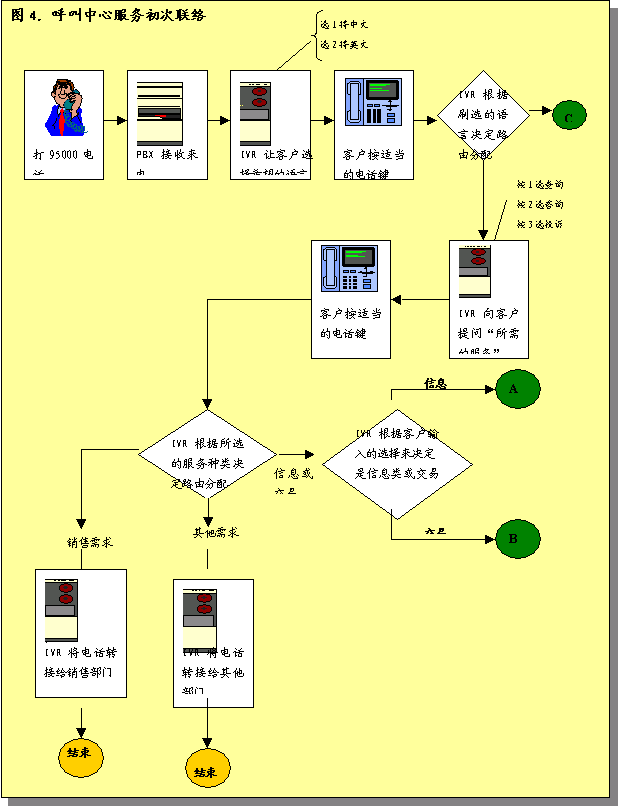 圖4詳細說明了呼叫中心服務初次處理呼叫的過程。根據(jù)圖標的內(nèi)容,將立即撥號呼叫者: