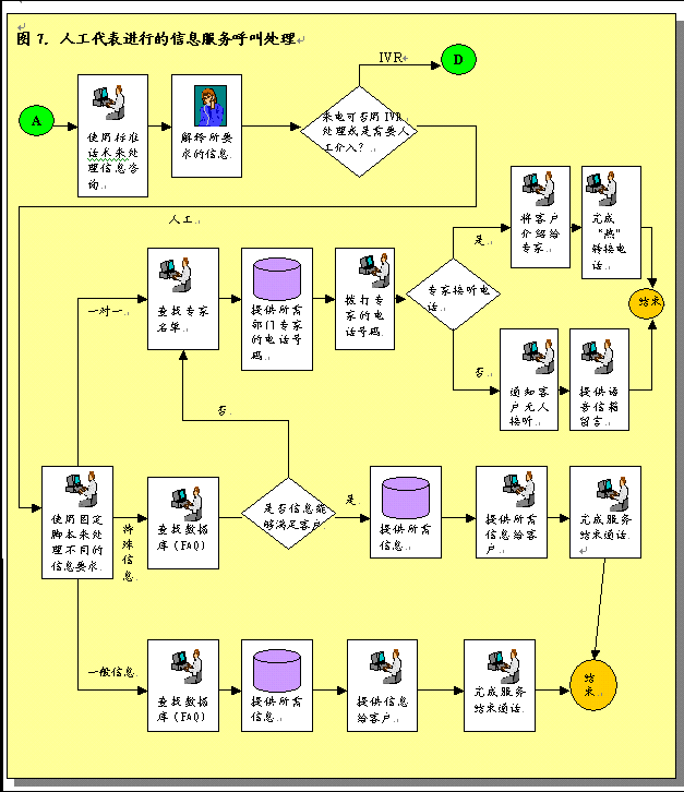 各部門也需要修改步驟處理和完成服務請求,F(xiàn)在,大多數(shù)公司個別部門接受和完成服務請求。許多部門在完成工作之后沒有對結(jié)果進行跟蹤回訪。對于一些部門服務請求只是紙上談兵。為了有效的提供呼叫中心服務并為服務請求提供信息,各部門必須采用新的步驟。這些步驟應包括從服務請求系統(tǒng)中重新獲取呼叫請求信息,跟蹤這些請求,工作完成后更新服務請求系統(tǒng)。對于沒有信息系統(tǒng)和目前使用人工操作的部門,要達到這一工作要求就需要設計和實施新的程序和系統(tǒng)。
