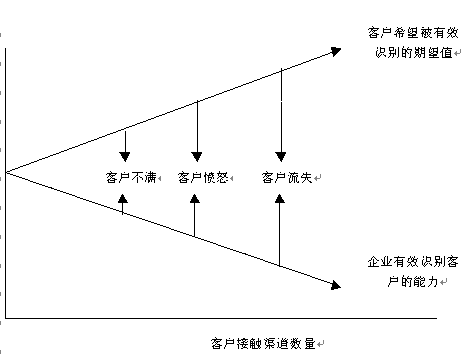 當(dāng)然, 這種識(shí)別不僅包括接觸之始的基本信息的識(shí)別, 更包括客戶與企業(yè)通過(guò)不同渠道接觸的詳盡信息的了解掌握, 以及在此基礎(chǔ)上的有的放矢的的溝通與服務(wù)內(nèi)容的到位. 客戶關(guān)系管理系統(tǒng)的應(yīng)用發(fā)展導(dǎo)致了這樣一個(gè)悖論: 技術(shù)越發(fā)展, 通路越增加,你和客戶的個(gè)性關(guān)系可以越緊密, 但相反結(jié)果的可能性也變得越大.