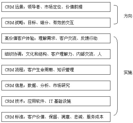 對(duì)于大多數(shù)公司而言,一個(gè)產(chǎn)品戰(zhàn)略很好理解。但是CRM戰(zhàn)略卻不太讓人理解。這是因?yàn)樵贑RM產(chǎn)業(yè)界、學(xué)術(shù)界對(duì)"CRM是什么"、"CRM戰(zhàn)略由什么組成"還沒有達(dá)成共識(shí)。因此,以下所闡述的CRM戰(zhàn)略并不一定勝人一籌,但我們會(huì)努力全面論述CRM戰(zhàn)略框架。我們認(rèn)為一個(gè)CRM戰(zhàn)略必須包括以下幾個(gè)內(nèi)容:定義價(jià)值前提、定義客戶戰(zhàn)略、企業(yè)變革計(jì)劃。