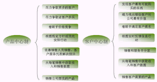 蓋洛普認為新型的企業(yè)與客戶的關系應當是以"客戶為中心"與客戶的互動關系,通過滿足客戶需求提高客戶滿意度來吸引和留住客戶,從而建立和保持企業(yè)的競爭優(yōu)勢。這其實就是從產品中心制到客戶中心制的演變的體現,如下圖: