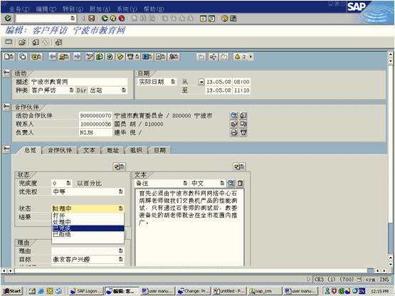 Explorer的層級(jí)樹結(jié)構(gòu)顯示客戶間的業(yè)務(wù)關(guān)系。通過報(bào)價(jià)菜單選項(xiàng)中預(yù)定義報(bào)價(jià)信息使用訂單輸入功能?梢赞D(zhuǎn)化成為訂單,后臺(tái)功能與SAPR/3集成可以實(shí)現(xiàn)。