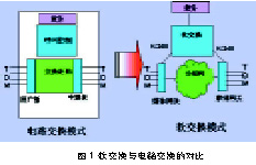 軟交換模式與傳統(tǒng)電路交換模式在結(jié)構(gòu)方面的對比,如圖1所示。