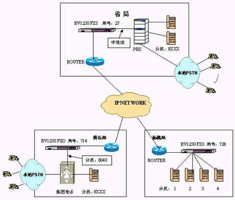 黃石局…呼叫各分支局:本地接入BV1250/FXO的分機號碼 + 對方局號+對方分機號碼。