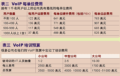 成本費用被定義為安裝用于初次VoIP部署的IP PBX、電話和網(wǎng)絡(luò)設(shè)備。