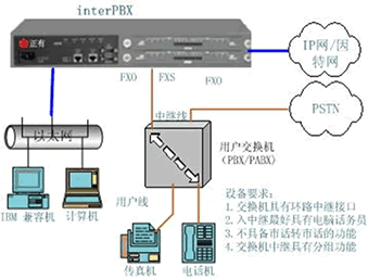 在實(shí)際使用過程中,經(jīng)常會(huì)出現(xiàn) interPBX與已有的PBX搭配使用的情況。interPBX與PBX搭配使用有很多好處,例如節(jié)省整個(gè)系統(tǒng)的設(shè)備投入成本、有效利用現(xiàn)有的布線及電話機(jī)等。