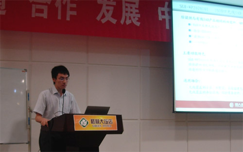 國人通信項(xiàng)目經(jīng)理陸寧在演講