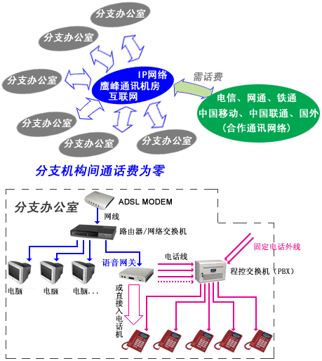 某跨國(guó)公司A(因涉及客戶商業(yè)保密原因,故隱去真實(shí)名稱),在中國(guó)目前共有40多家分公司及辦事機(jī)構(gòu)。其不同分公司及辦事機(jī)構(gòu)之間需要大量的語音通信支持業(yè)務(wù)往來,話音通信主要是通過傳統(tǒng)的電話方式,即不同機(jī)構(gòu)將使用的不同類型的PBX(數(shù)字程控交換機(jī))接入本地電話公網(wǎng),通過電信公司的固定長(zhǎng)途網(wǎng)進(jìn)行通話。與此同時(shí), A公司各不同機(jī)構(gòu)都有與遍布各地的用戶經(jīng)常溝通的需求,此種通信方式使得整個(gè)A公司要支付巨額電話費(fèi)用。更重要的是,A公司目前此種通信方式不便于整個(gè)語音通信系統(tǒng)的統(tǒng)一管理及維護(hù),更不利于整個(gè)公司以一個(gè)統(tǒng)一的公司形象對(duì)外。