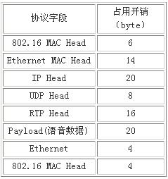 K,其實際映射到WIMAX空口的整個過程是需經很多次封裝。各種封裝協議所額外占用的開銷,如表1所示。