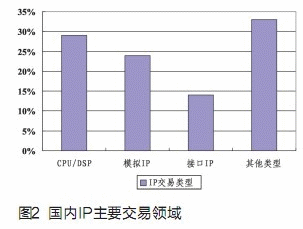 Express等);三是模擬IP(如PLL,ADC等)。這三類IP需求占到總需求的一半多。而其他的交易類型如標準的內存模塊,以及一些面向特殊應用的IP,則占據(jù)國內需求的三分之一(見圖2)。