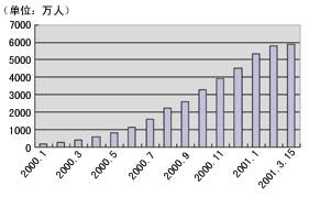 從使用即時(shí)通訊的用戶(hù)數(shù)目來(lái)看,其增長(zhǎng)速度十分驚人,到2001年3月份,其總量達(dá)到了6000萬(wàn)人。這主要得益于中國(guó)這兩年互聯(lián)網(wǎng)發(fā)展速度迅猛,而且這還與人們對(duì)于即時(shí)通訊的需求在增加有關(guān),很多人在網(wǎng)上有兩個(gè)甚至三個(gè)或更多的OICQ號(hào)碼以便與不同的伙伴聯(lián)系。