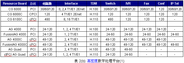 其中高密度模擬處理平臺(tái)包括的產(chǎn)品有:AG2000C,CX2000,CX2000C等,其特征如下表2。