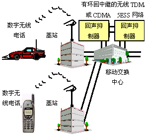 為了確保在一個(gè)本地?zé)o線到無線呼叫中包含有Studio Sound功能,回聲抑制器必須安裝在兩個(gè)附加位置之一。對于使用5ESS交換機(jī)的CDMA或TDMA移動(dòng)交換中心,這是通過環(huán)回中繼實(shí)現(xiàn)的,兩個(gè)回聲抑制器背靠背安裝在MSC內(nèi)交換機(jī)的兩個(gè)中繼上。對于GSM網(wǎng)絡(luò),回聲抑制器可以安裝在A接口上也就是MSC和基站之間的鏈路上,這些配置中的每一個(gè)都允許本地?zé)o線呼叫的兩側(cè)都獲得完整的Studio Sound功能集的好處。