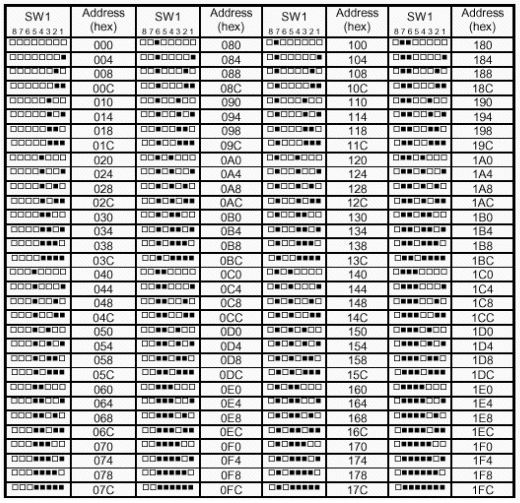 不同的開關(guān)配置對應(yīng)不同的 I/O 地址,如圖2.2所示。
