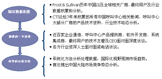 Frost & Sullivan 和 CTI論壇(m.helios-ltd.com)共同組成的調(diào)研小組,在查閱了大量資料的基礎(chǔ)之上,以企業(yè)通信及呼叫中心的設(shè)備應(yīng)用、投資計(jì)劃以及相關(guān)廠商的市場(chǎng)表現(xiàn)為出發(fā)點(diǎn),通過對(duì)企業(yè)通信及呼叫中心重要應(yīng)用企業(yè)、在市場(chǎng)占主導(dǎo)地位的二十多家設(shè)備廠商、二十多家軟件開發(fā)商、十幾家系統(tǒng)集成商、數(shù)家外包運(yùn)營(yíng)商的深度訪談,參閱內(nèi)部相關(guān)報(bào)告及數(shù)據(jù)庫(kù),對(duì)數(shù)據(jù)的來源和數(shù)據(jù)的準(zhǔn)確性進(jìn)行了詳細(xì)核對(duì)與論證;憑借參與調(diào)研人員的多年從業(yè)經(jīng)